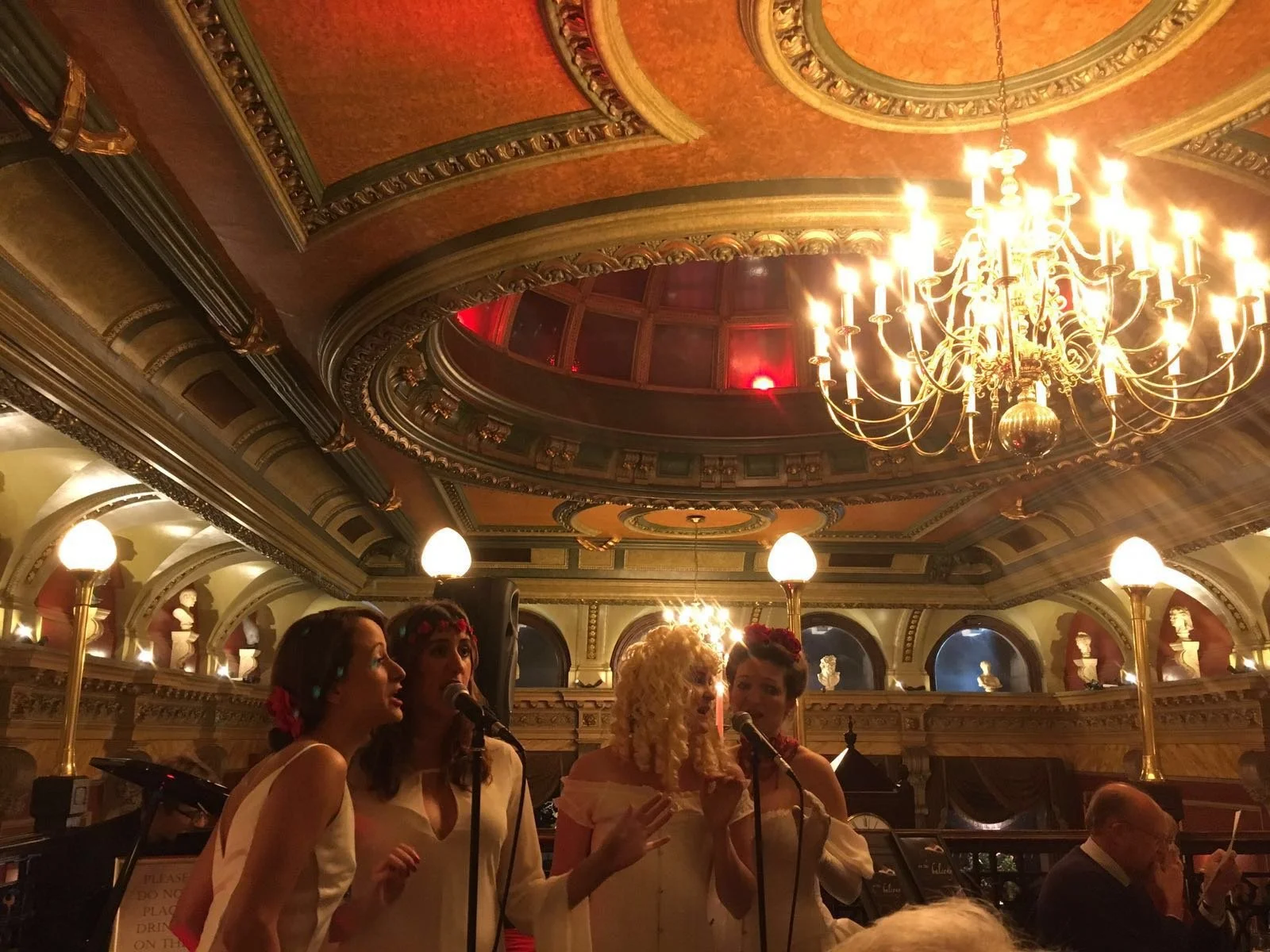 The Ruby Dolls can be hired to perform at private events and have an impressive CV of event experience including; weddings, corporate events, parties, charity events, vintage clothing fairs & farmer’s markets. They can create a tailor-made cabaret with bespoke arrangements of your favourite songs, they can simply provide beautiful background music - and everything in between. They’ve performed in fancy hotels, on the deck of a boat, in the middle of Euston Station at rush hour for one company’s innovative promotional stunt! You name it - they’ve probably done it!